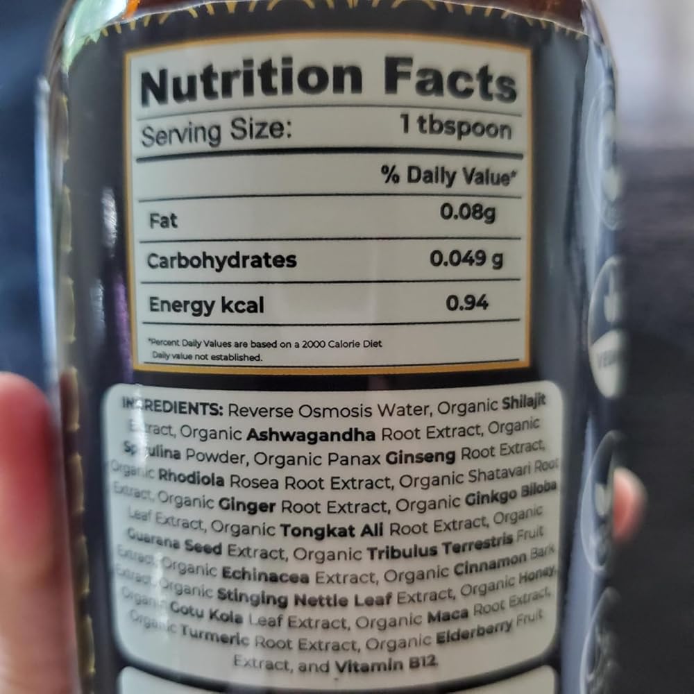 - Himalayan shilajit (≥50 % fulvic acid) + 8 energizing adaptogens