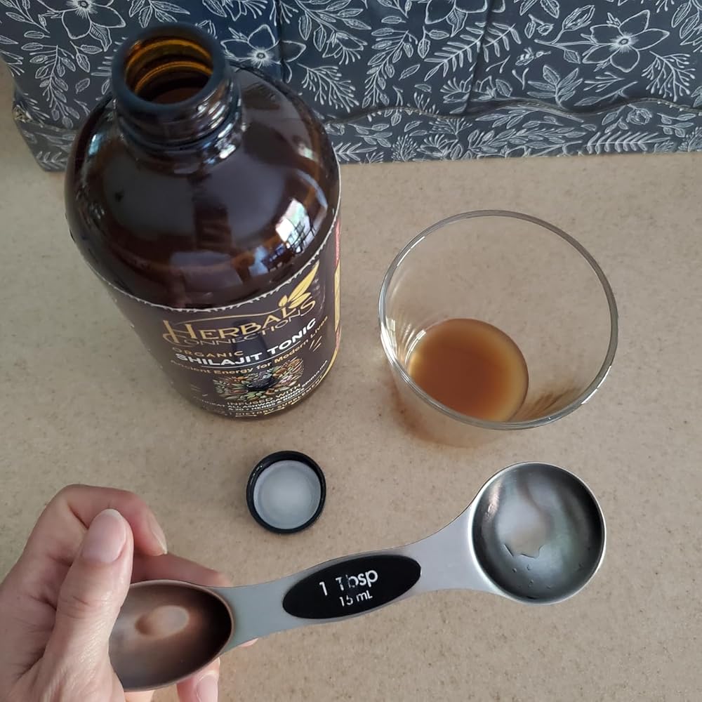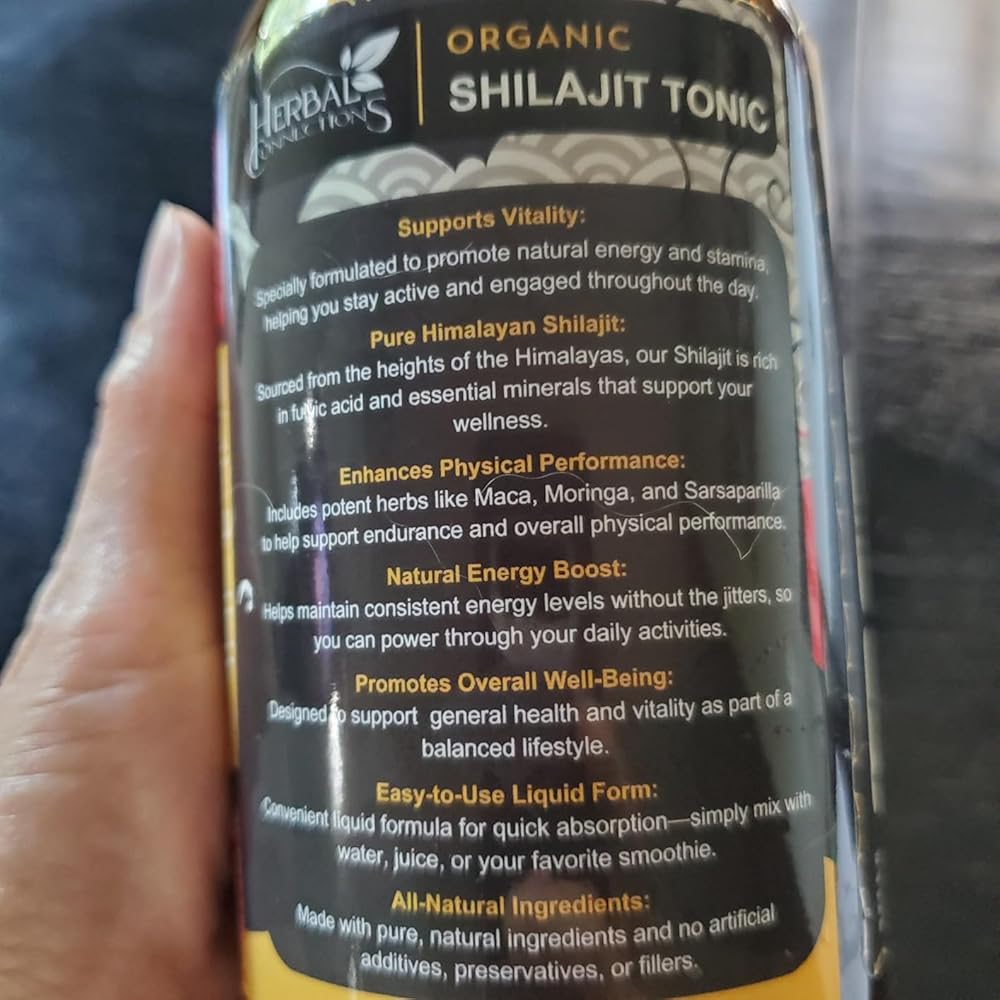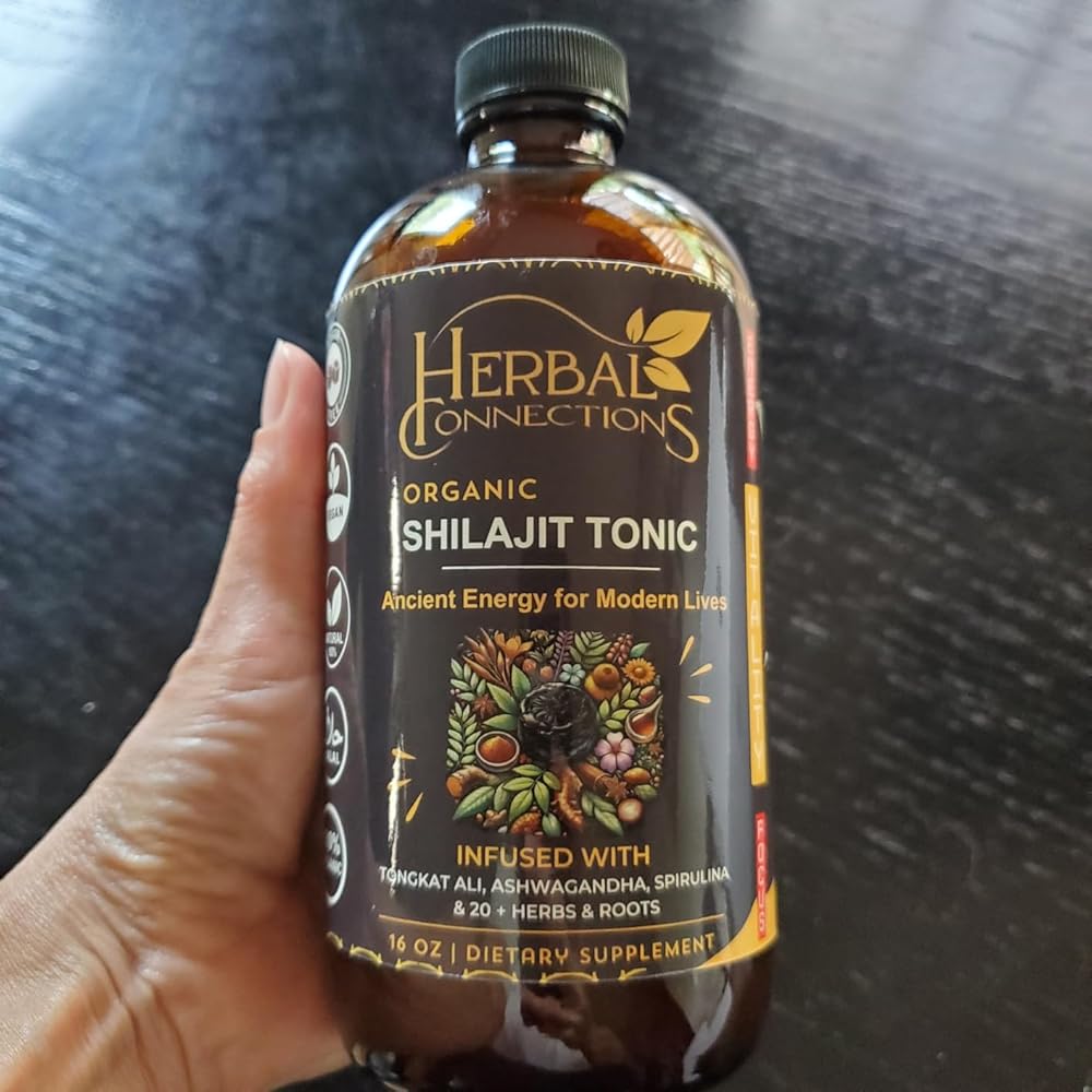 A 16 oz vegan, non‑GMO herbal tonic blending pure Himalayan shilajit with 20 adaptogenic herbs—like ashwagandha, spirulina, maca, and turmeric—for natural energy, stress support, and daily vitality.