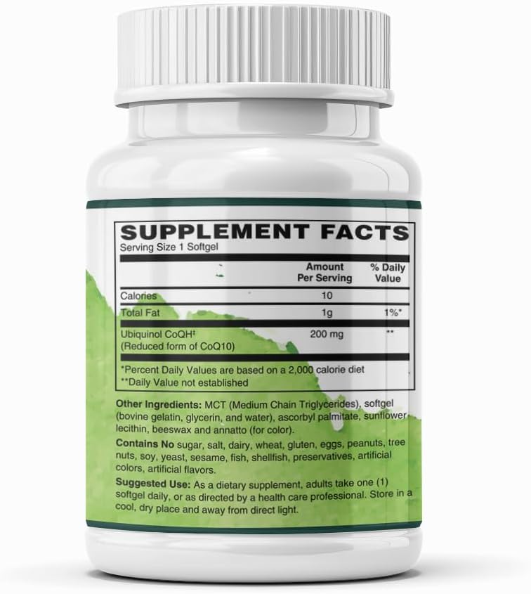 - You’ll never find sugar, dairy, wheat, gluten, soy, peanuts, tree nuts, eggs, sesame, fish, shellfish, preservatives, or artificial colors here. Every batch is non-GMO and produced in a GMP-certified U.S. facility, then bottled in recyclable PET for planet-friendly peace of mind. Take one softgel daily with a meal and experience the difference active CoQ10 makes for heart vitality, cellular energy, and antioxidant defense.